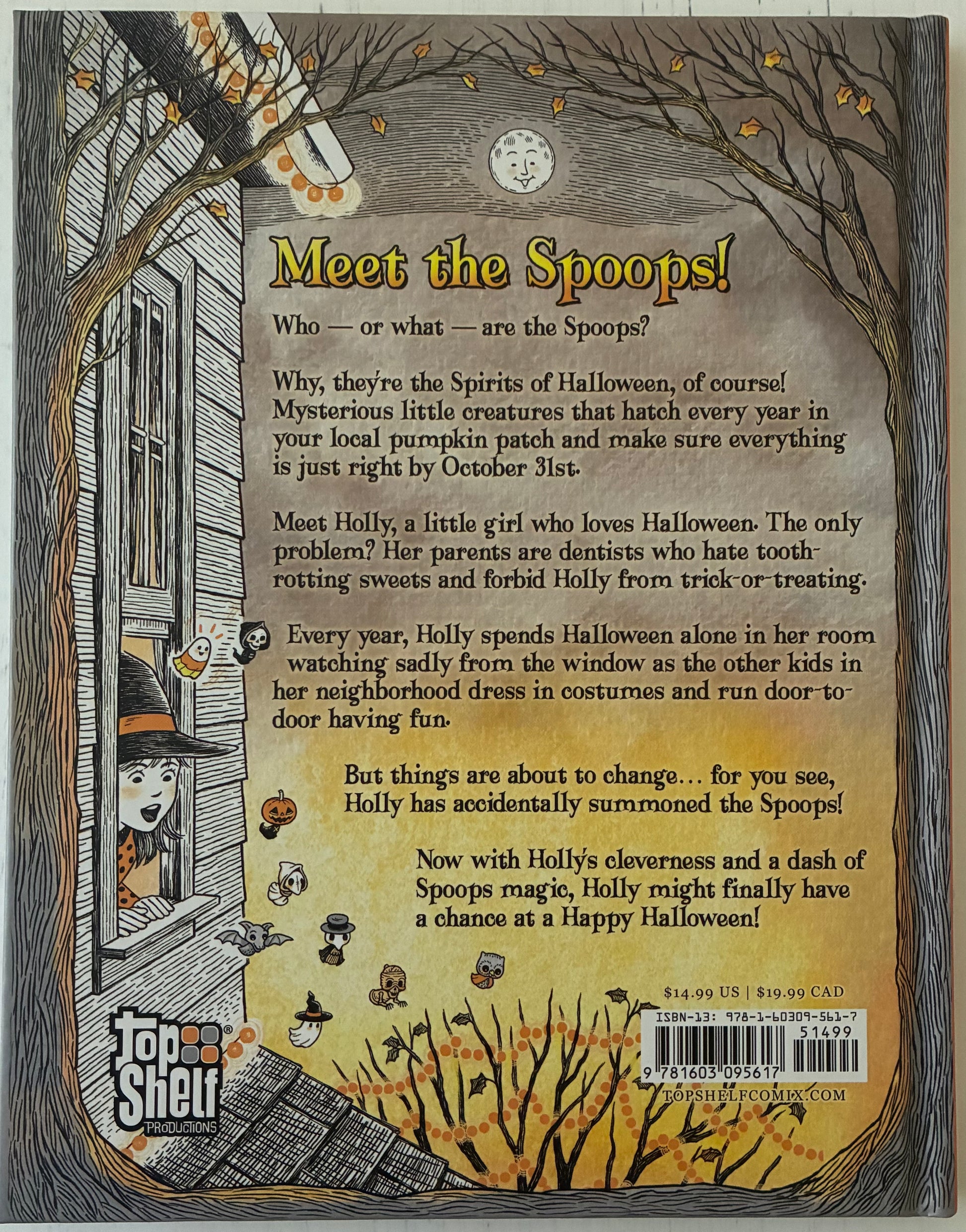 In this story, young Holly Hollowell loves Halloween more than anything, but her dentist parents are totally against any event that promotes tooth-rotting sweets. While other kids trick-or-treat, Holly watches sadly from her window...until the Spoops arrive to turn things around! With their magical help, Holly can finally show her parents the true spirit of Halloween: not the candy, but the joy of expressing yourself, unleashing your imagination, and letting your spooky side soar!